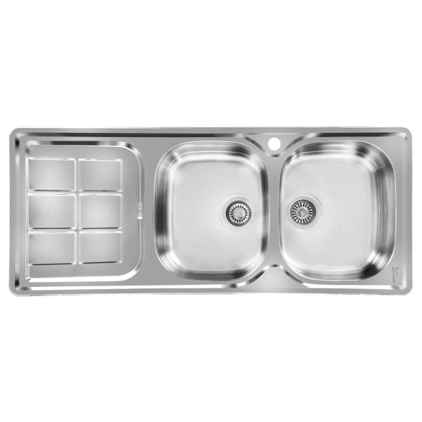وزن 5 کیلوگرم نحوه نصب روکار ابعاد سینک 600 × 1200 جنس سینک استیل تعداد لگن دو عمق لگن 150